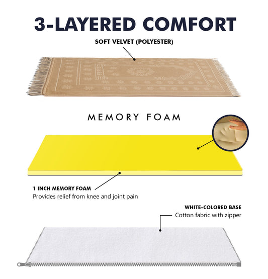 Al Noor Ortho Memory Foam Prayer Mat (Jai Namaz) – Beige